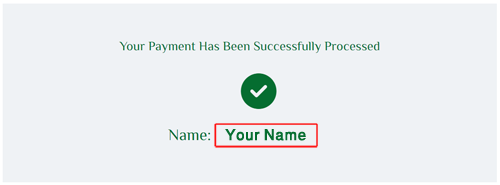 • A payment confirmation message will be displayed through the browser after using the bank card, showing the name and confirmation of the payment transaction.